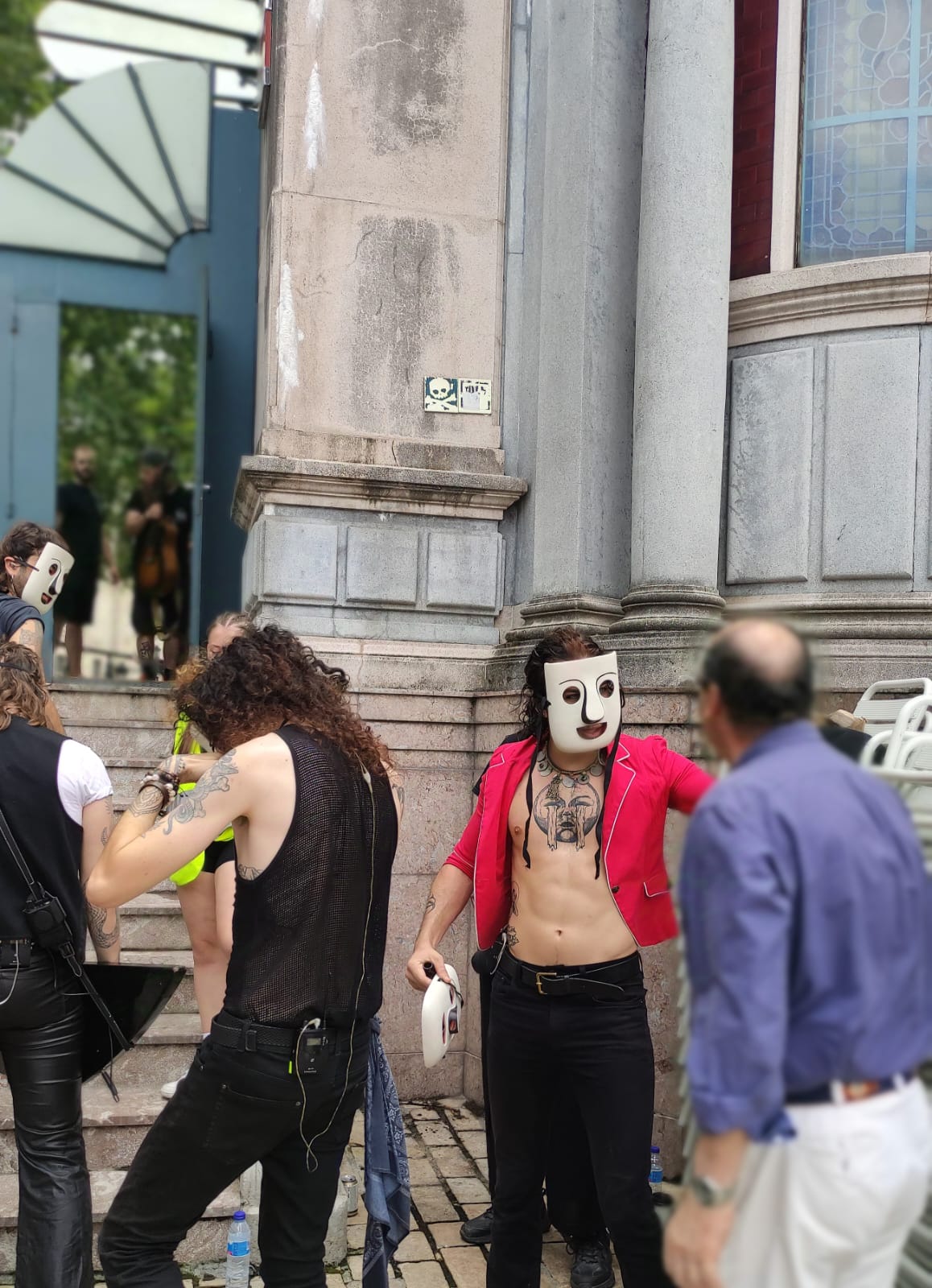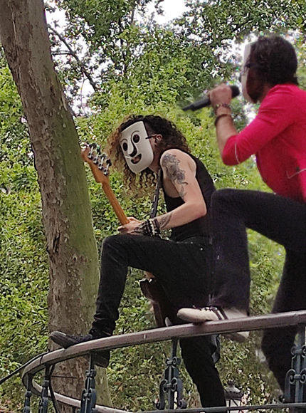 Después de unas cuantas canciones aparecieron con máscaras de fantasmas, la histrionicidad del grupo me hizo gracia, no así sus comentarios que sonaban un poco a frase hecha, “nos gusta presentarnos en lugares atípicos como este”, la cultura para todos y cosas por el estilo.