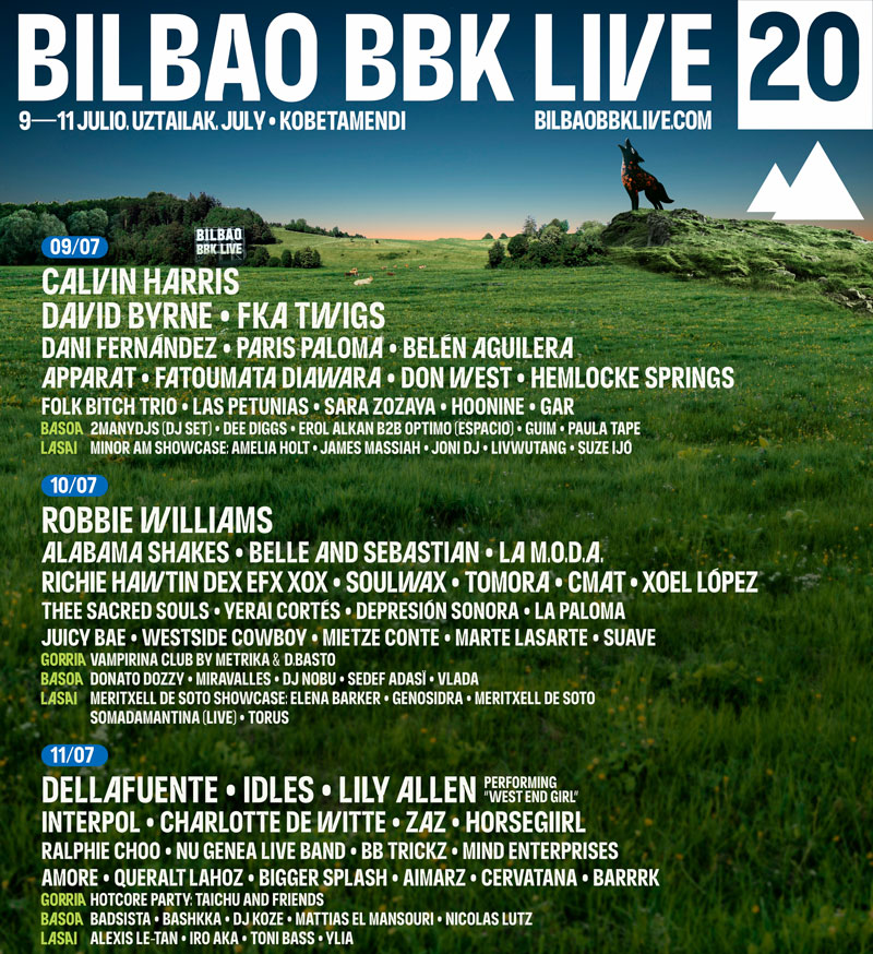 El cartel ya ha sido desvelado por días , con la ultima incorporación FKA TWINS, al que acompañan figuras tan importantes como ROBBIE WILLIAMS, DAVID BYRNE, CALVIN HARRIS, DELLAFUENTE, IDLES , LILY ALLEN, BELLE AND SEBASTIAN, XOEL LOPEZ...